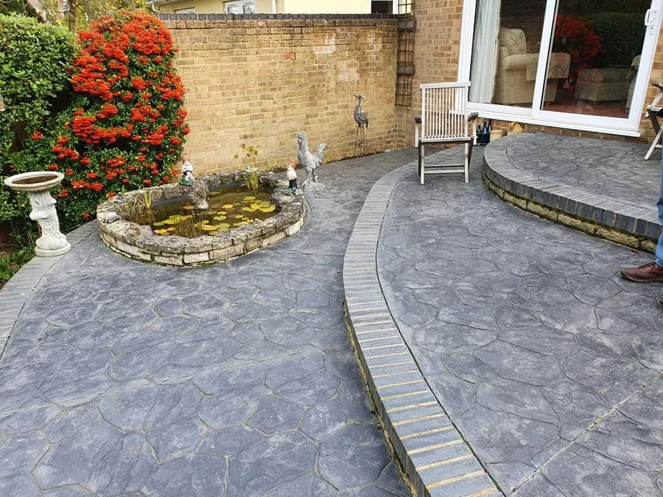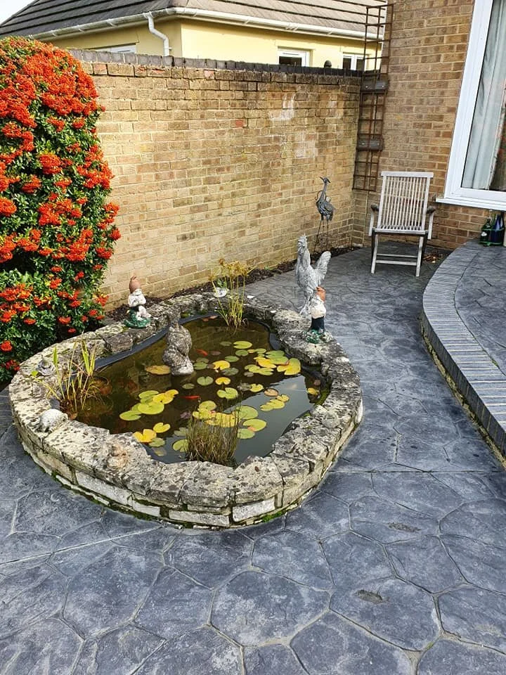 This job was also completed on Friday, the pond was removed and in filled and wall repositioned to give me seating area, the whole area was then cleaned and sealed to match the new area in with the existing which is now 10 years old.